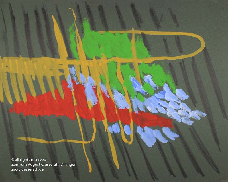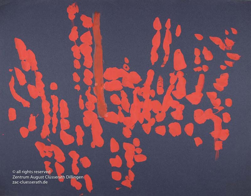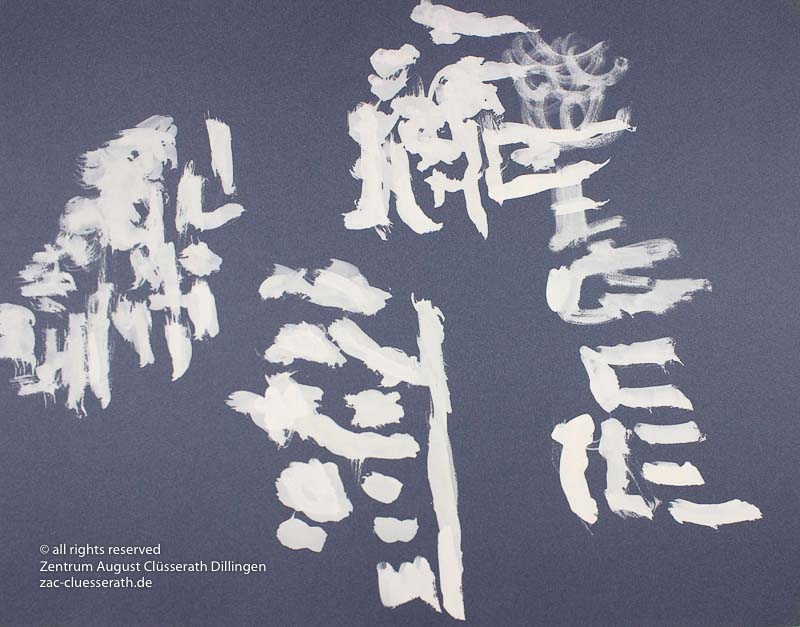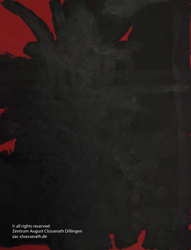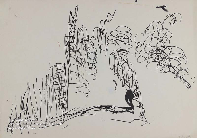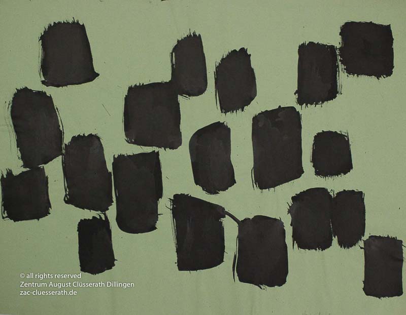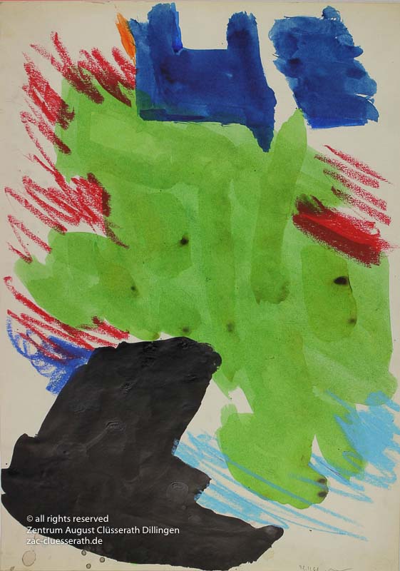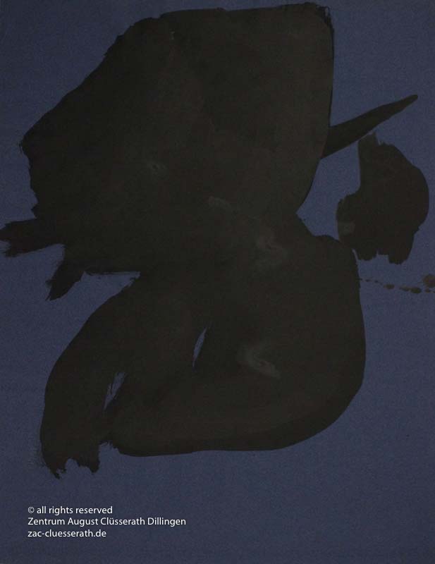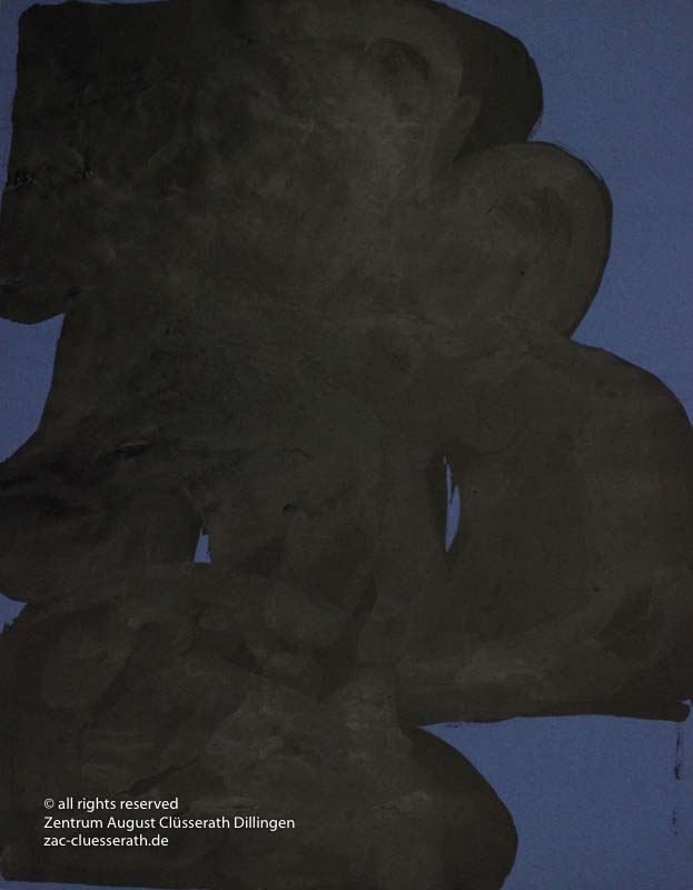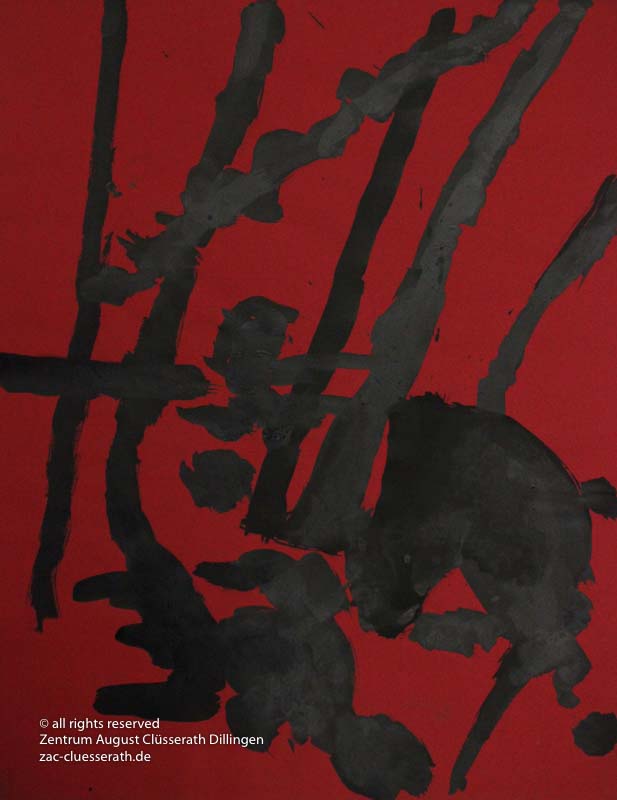 Ab Mitte der 1950er Jahre befreit sich August Clüsserath endgültig vom Gegenstand und schafft vollkommen abstrakte Kompositionen. Aus geometrischen Elementen werden bewegte Farbflecke. Clüsseraths Strich wird gestischer und leichter. Die sicherlich radikalsten Formulierungen sind die schwarz-weißen Lackbilder: gestische Arbeiten, bei denen sich die Linien locker auf dem Untergrund bewegen oder sich zu einer kompakten Fläche verdichten. Mit diesen Arbeiten schließt er auf zu den großen Protagonisten der abstrakt-ungegenständlichen Malerei jener Zeit, beispielsweise zu Franz Kline, Hans Hartung oder Pierre Soulages. Neben den schwarz-weißen Bildern entstehen eindrucksvolle Kompositionen, in denen Clüsserath die Farbe zur Geltung bringt, mit schnellem Pinselduktus gemalt und von schwarzen Linien und Strichen akzentuiert.